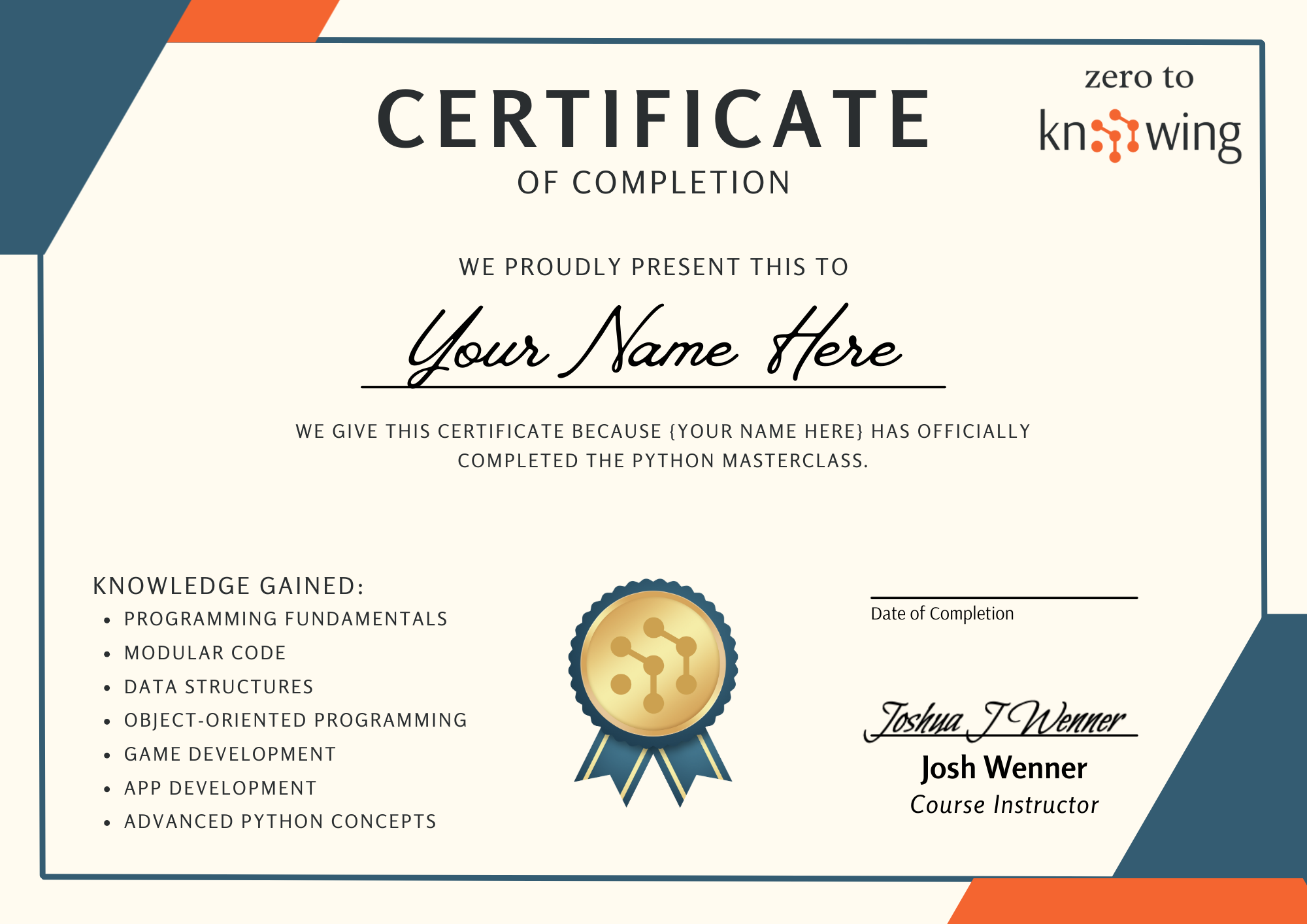 Because this course provides a structured step-by-step roadmap built from years of hands-on teaching experience, with live support to eliminate confusion and guesswork, and is combined with real-world projects to help students effectively apply their knowledge in real-world situations. The program comes packed with specially crafted guides, eBooks and support to make sure you actually learn Python.